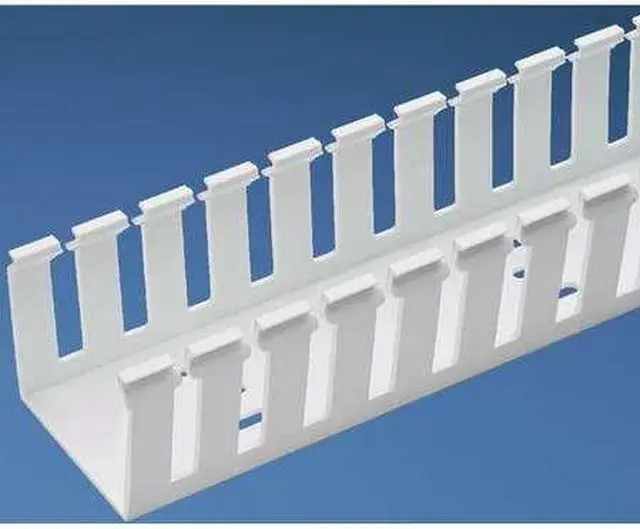Wiring Duct, Wall Type Wide Slot, Width 2 1/4 in, Height 3 1/8 in, Slot Width 0.3 in, Material Lead-Free PVC, Color White, Mounting Style Screw Mount, Length 72 in, Slot Height 2.1 in, Slot-to-Slot Centerline 1 in, Standards CE Compliant, RoHS, UL Listed, Compatible Cover Style Snap-On, Nominal Height 3 in, Nominal Width 2 in. This item has been restricted from sale in the following state (s): []