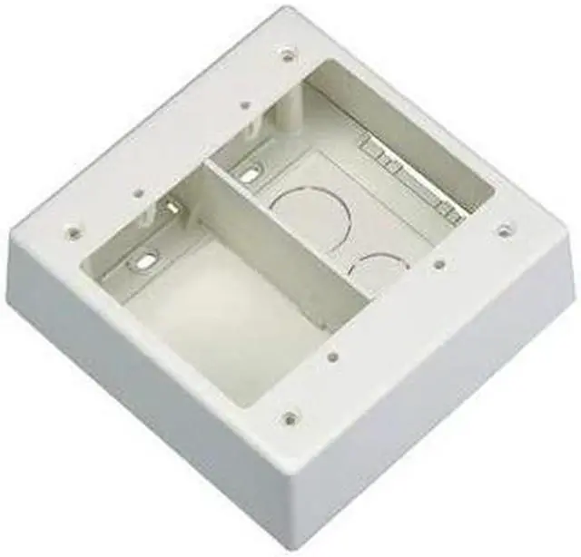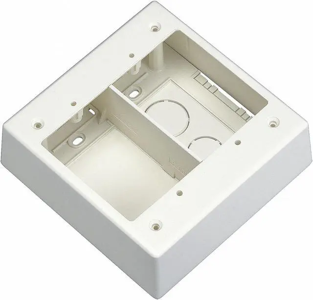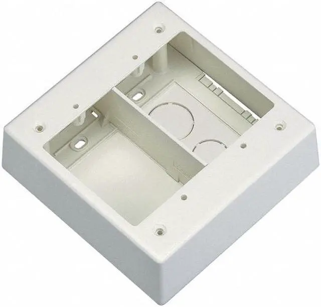 Divided Junction Box, Series LD5, T-45, Material of Construction PVC, Box Type Gang, Cover Closure Screw On, Knockouts (1) 1/2 in Trade Size, (1) 3/4 in Trade Size, Color Off White, Height (In. ) 1 5/8 in, Length (In. ) 5 in, Width (In. ) 5 in, For Use With Pan-Way (R) T-45 or LD Profile Raceways, Mounting Screw On, Standards RoHS, Backing Non-Adhesive, Number of Gangs 2. This item has been restricted from sale in the following state (s): []