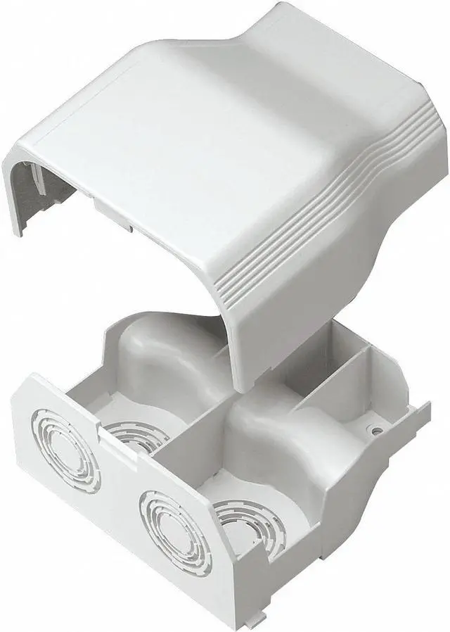 Entrance End, Series T-70, For Raceway Height 1 1/4 in, For Raceway Width 2 1/2 in, For Raceway Width x Height 2 3/8 in x 1 1/4 in, Material PVC, Color Off White, Mounting Style Snap On, Compatible with Product Type T-70 Raceway, Features Workstation Outlet Center (TM) Offset Box, Includes Entrance End Fitting, Overall Height 3 in, Overall Length 6 in, Overall Width 5 3/4 in, Standards CE Compliant, UL Listed, UL 5A. This item has been restricted from sale in the following state (s): []