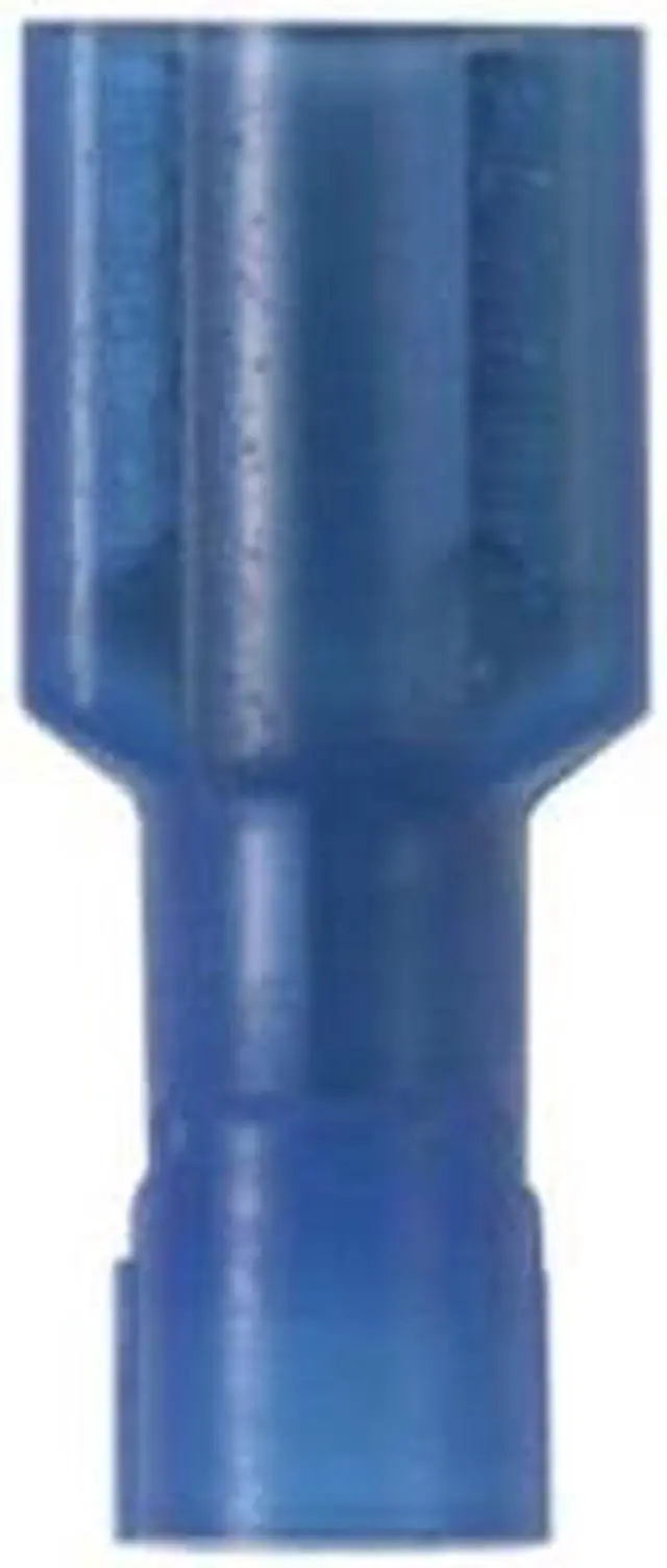Wire Disconnect, Contact Finish Tin, Contact Material Brass, Disconnect Style Quick Disconnect, Insulation Color Blue, Insulation Coverage Full Coverage, Insulation Material Nylon, Maximum Operating Temperature 221 Degrees F, Minimum Wire Size 16 AWG, Maximum Wire Size 14 AWG, Maximum Voltage 600 V, Tab Thickness 0.032 in, Tab Width 0.25 in, Terminal Type Socket, Termination Style Crimp, UL 94 Flammability Rating HB, RoHS Compliant Yes, Seam Style Butted, Standards CSA 22.2 No. 153, UL 310. This item has been restricted from sale in the following state (s): []