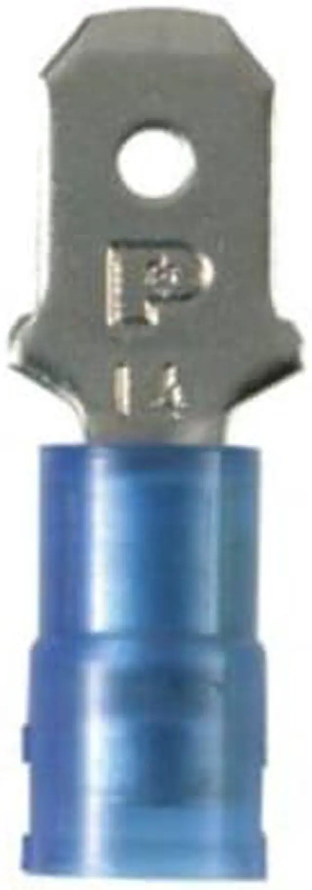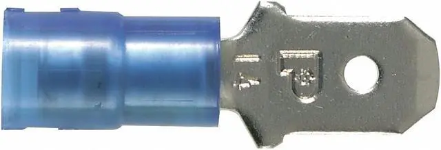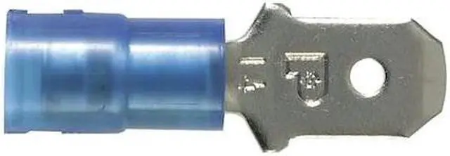 Wire Disconnect, Contact Finish Nickel, Contact Material Copper, Disconnect Style Quick Disconnect, Insulation Color Blue, Insulation Coverage Partial Coverage, Insulation Material Nylon, Maximum Operating Temperature 221 Degrees F, Minimum Wire Size 16 AWG, Maximum Wire Size 14 AWG, Maximum Voltage 600 V, Tab Thickness 0.032 in, Tab Width 0.25 in, Terminal Type Tab, Termination Style Crimp, UL 94 Flammability Rating HB, RoHS Compliant Yes, Seam Style Sleeved Barrel. This item has been restricted from sale in the following state (s): []
