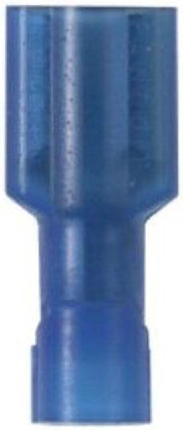 Wire Disconnect, Contact Finish Tin, Contact Material Brass, Disconnect Style Quick Disconnect, Insulation Color Blue, Insulation Coverage Full Coverage, Insulation Material Nylon, Maximum Operating Temperature 221 Degrees F, Minimum Wire Size 16 AWG, Maximum Wire Size 14 AWG, Maximum Voltage 600 V, Tab Thickness 0.032 in, Tab Width 0.25 in, Terminal Type Socket, Termination Style Crimp, RoHS Compliant Yes, Seam Style Butted. This item has been restricted from sale in the following state (s): []