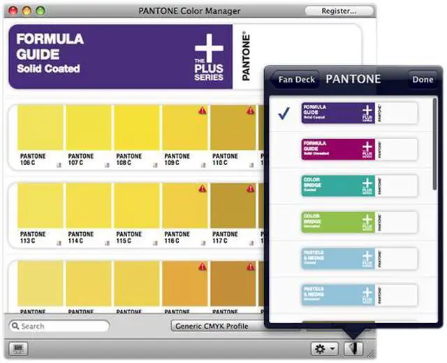 | Feature | COLOR MANAGER Software is a robust desktop application that provides the assurance and confidence to use the latest PANTONE Colors accurately. COLOR MANAGER will update all of the PANTONE libraries – more than 9,000 colors in all, including the dazzling new PLUS SERIES Colors – and make them ready to use in your QuarkXPress, Corel and Adobe Creative Suite design programs. COLOR MANAGER will let you use ICC profiles to create your own color-managed PANTONE Color libraries. Automatically updates all PANTONE Color Libraries - and keeps them up to date Uses PANTONE PLUS Color Bridge values Will also build ICC profile-based device-specific CMYK recipes for any PANTONE Graphics library (PANTONE Fashion + Home libraries will be added in future releases) Simulates and helps you visualize spot vs. 4-color process, including display and print gamut warnings to make it easy to identify any colors that cannot be properly printed on your target output device or properly displayed on your monitor Synchronizes spot color values to design applications COMING SOON: Enables synchronization of device-specific values to myPANTONE iPhone application (including standard PANTONE Color Bridge CMYK values) Tech Specs COLOR MANAGER supports QuarkXPress 7 and 8, Corel and all Adobe Creative Suite versions of Adobe InDesign, Adobe Photoshop and Adobe Illustrator. PANTONE Color libraries included are the PANTONE PLUS SERIES and Pantone Goe System for multimedia and graphic design and, in future releases, the Pantone SMART System for Fashion + Home. |