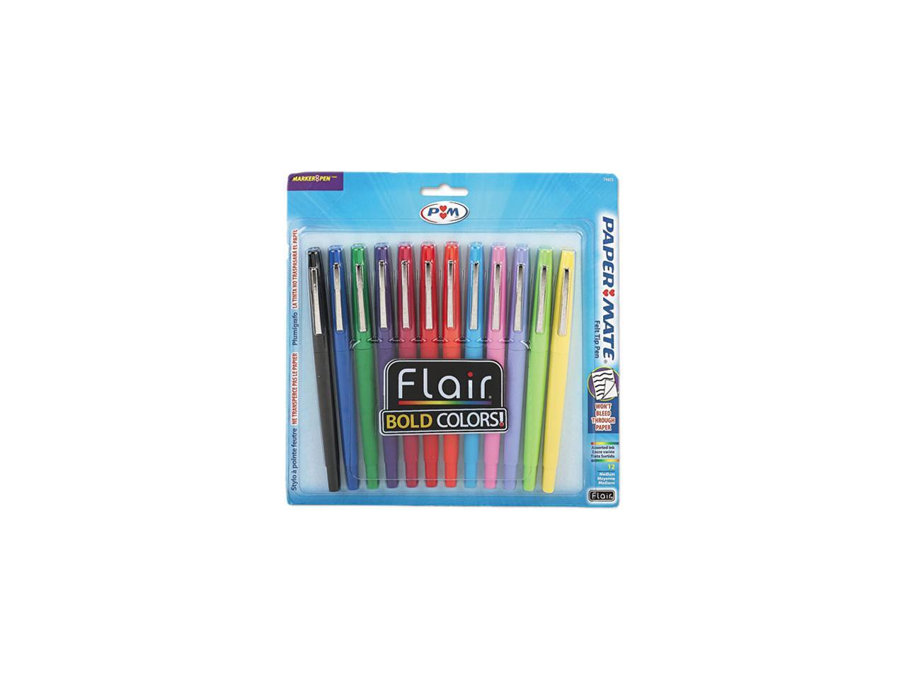 Paper Mate 74423 Flair Porous Point Stick Pen, Assorted Ink, Medium, Dozen