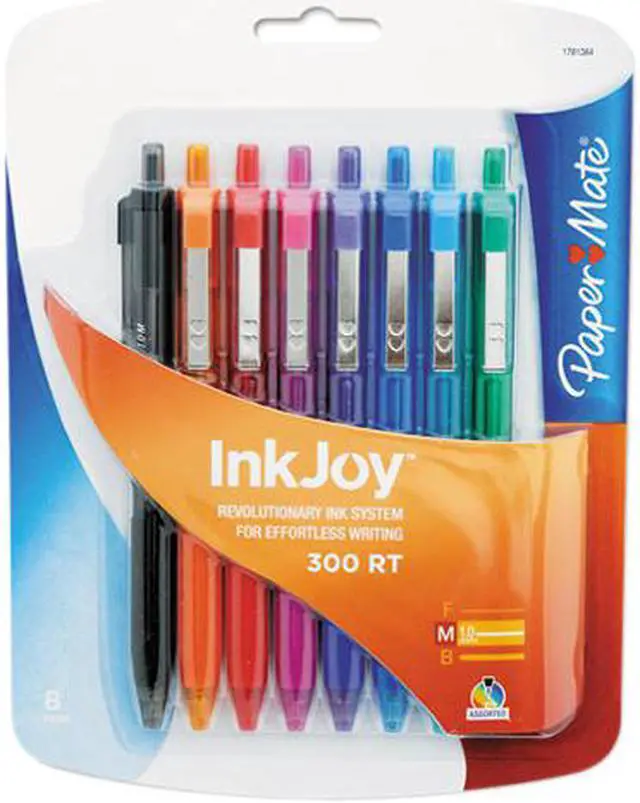 Create dynamic pieces of writing with this 8-pack of Paper Mate InkJoy 300RT medium assorted ballpoint retractable pens.