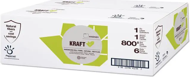Heavenly Soft Hard wound paper towel roll in natural color offers strong and excellent absorbent. 1-Ply Towel roll is fits most universal dispensers and contains 100 percent post-consumer recycled content, sold as 6 rolls per case.
