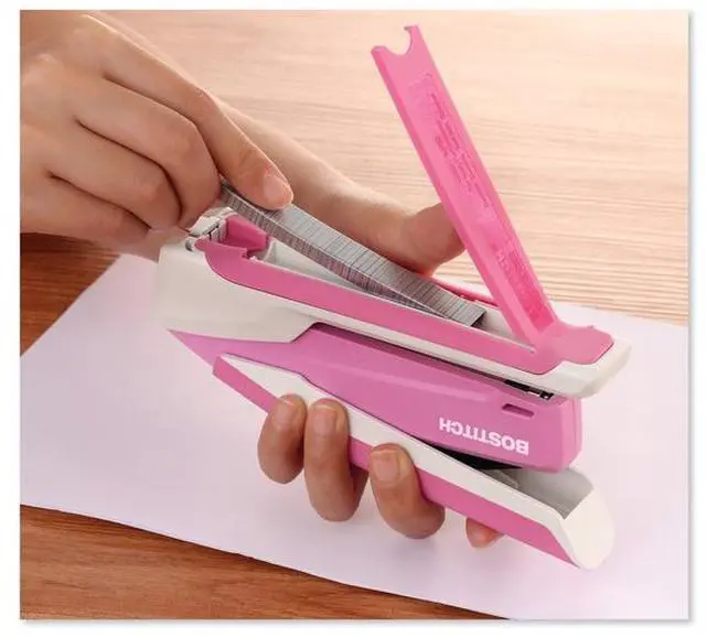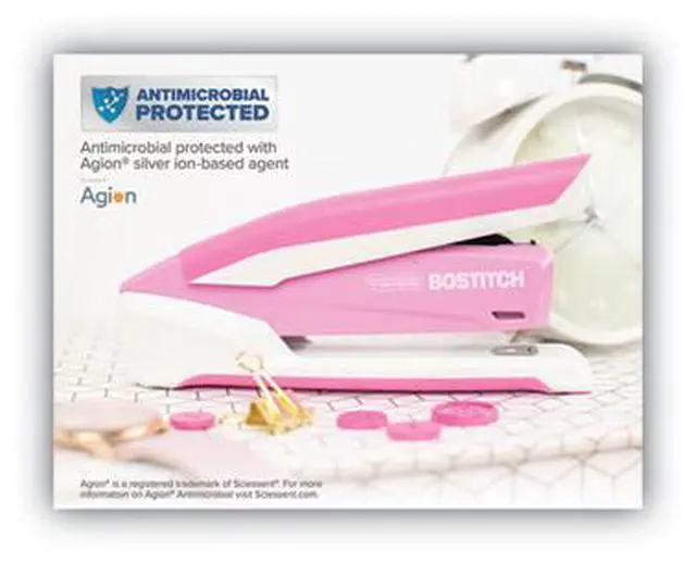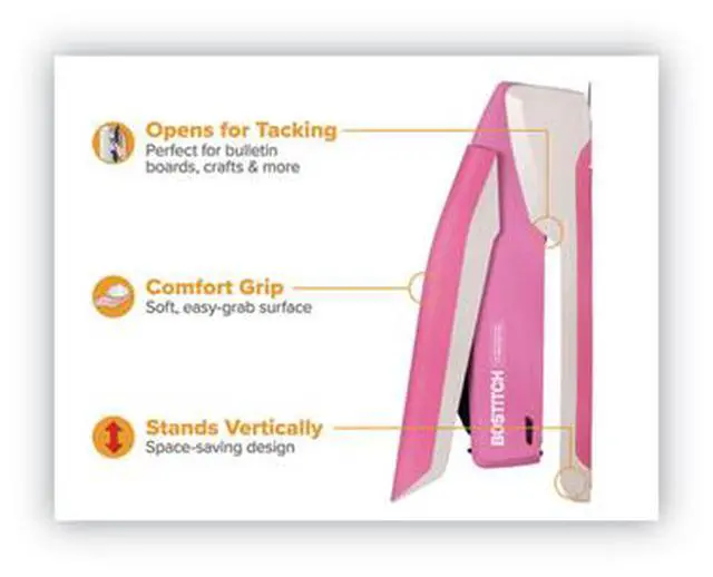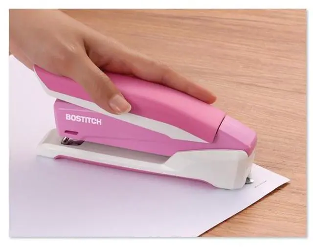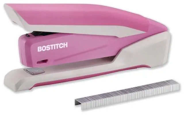 Bostitch InCourage Spring-Powered Desktop Stapler, 20-Sheet, Pink/White (1188).