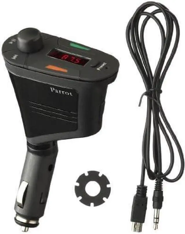 The Parrot PMK5800 speakerphone has the advantage of being compact and portable, yet capable of delivering voice and music over the vehicle's speakers. It contains a high-quality FM stereo transmitter that transmits calls and music to the car stereo so that it is heard loud and clear.