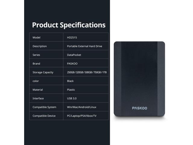 PASKOO 320GB HDD 2.5 Inch Portable External Hard Drive USB 3.0 Storage Compatible for PC Mac Desktop MacBook PS4 Xbox one TV 320GB
