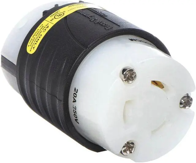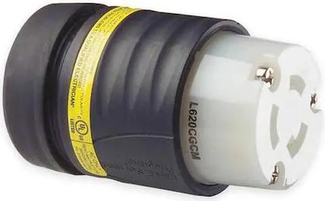 Locking Connector, Connection Orientation Straight, Current Rating 20 A, Housing Color Black, White, Housing Material Nylon, IP Rating Not Rated, NEMA Receptacle Configuration L6-20R, Number of Poles 2, Number of Wires 3, Phase Three, Resistance Properties Chemical Resistant, Impact Resistant, Shrouded No, Voltage Rating 250V AC, Wiring Style Standard, Contact Material Brass, For Maximum Cable Diameter 0.69 in, For Minimum Cable Diameter 0.385 in, Grade Federal Specification, Grounding Grounded. This item has been restricted from sale in the following state (s): []