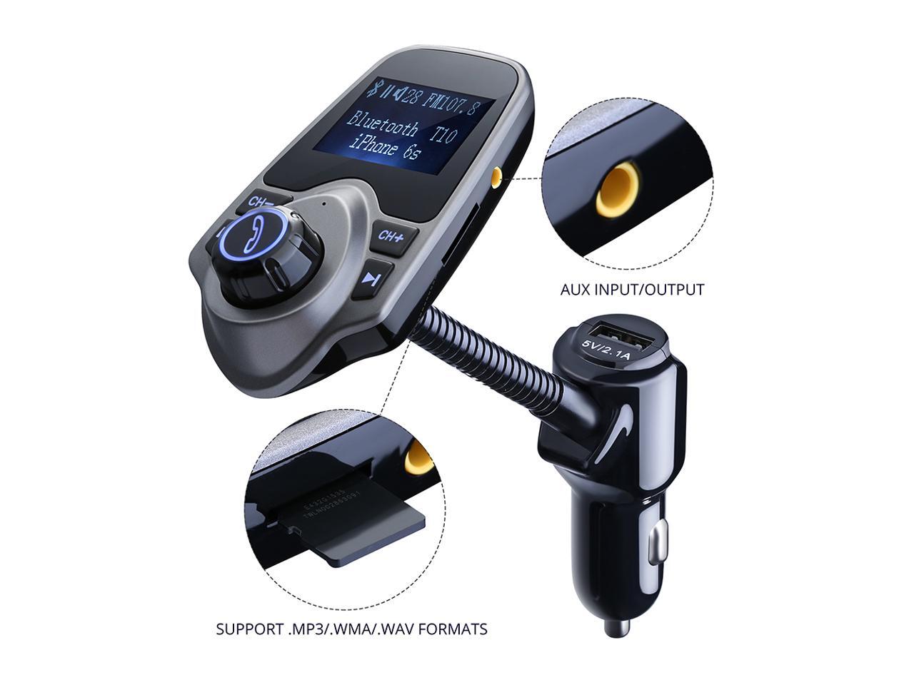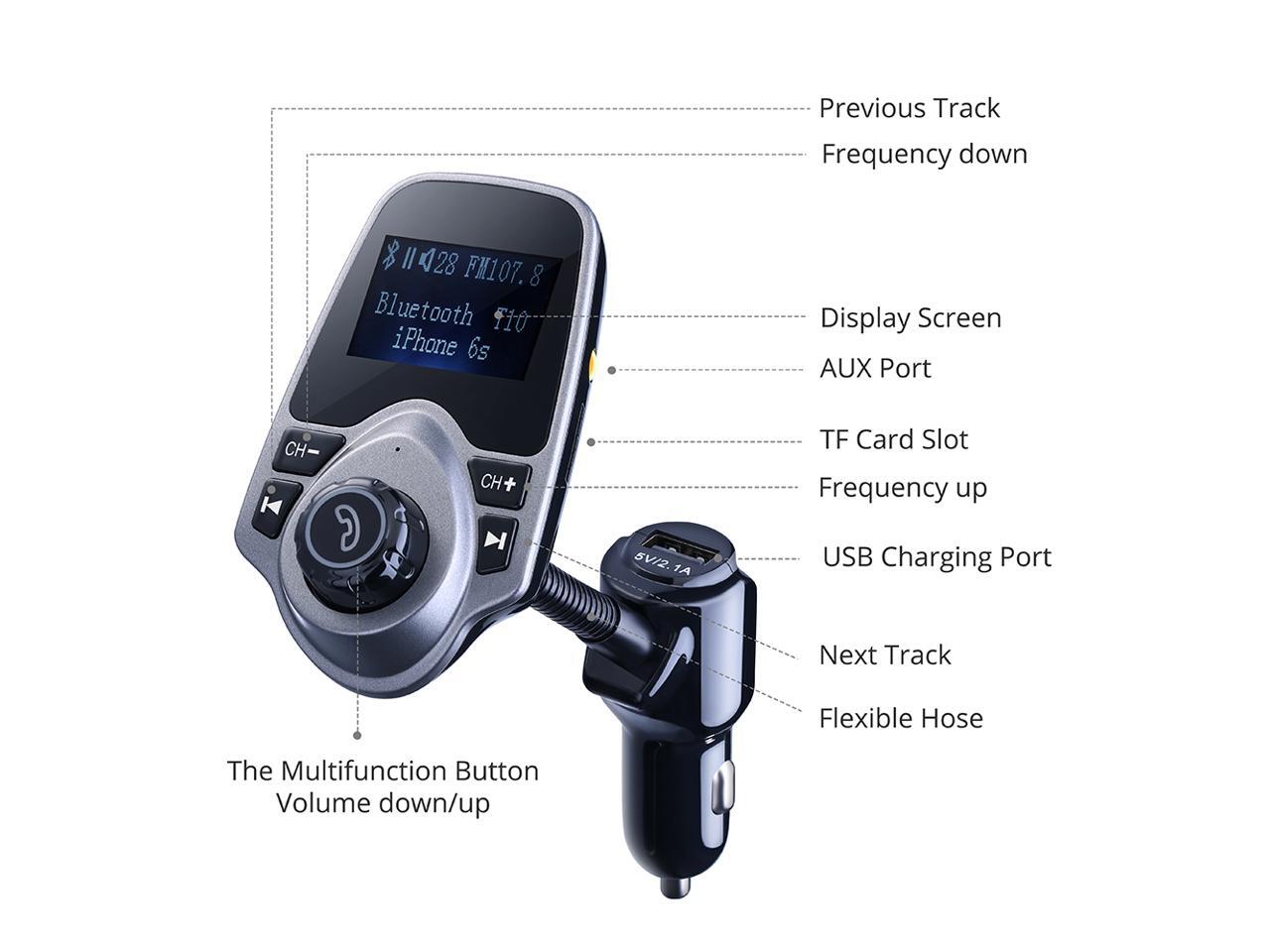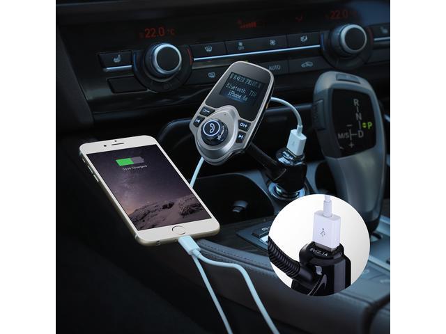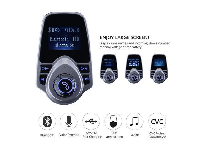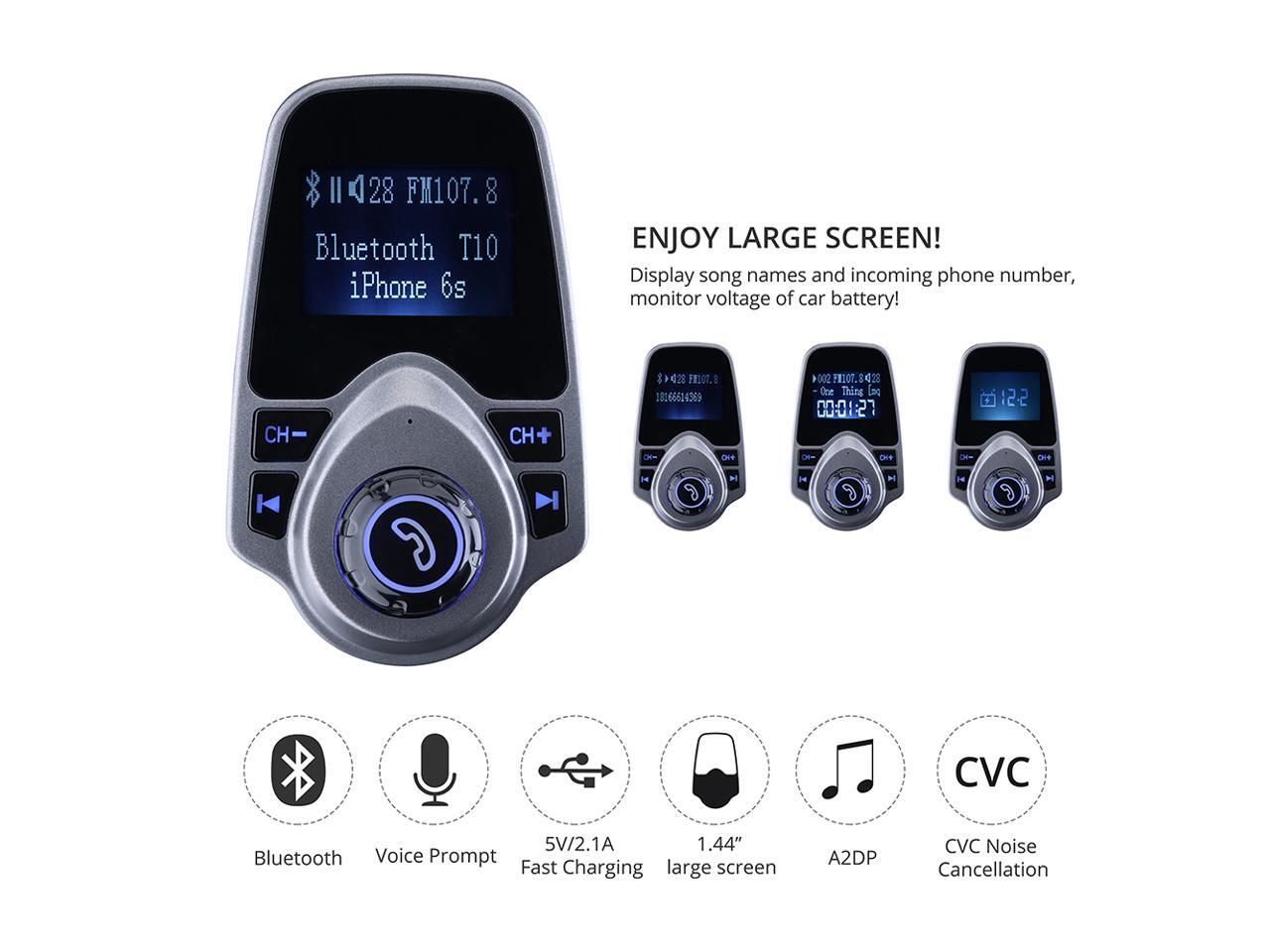 Wireless Bluetooth FM Transmitter& USB Car Charger 1.44 Inch Screen Supports Display Car Battery Voltage, Song Names, Incoming Phone Number
