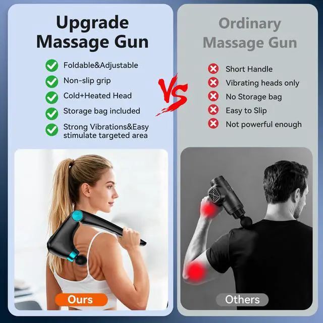 Designed for home relaxation, post-workout recovery, office breaks, and travel use, this foldable massage gun helps you enjoy comfortable self-massage wherever you are. The adjustable handle makes it easy to reach your back, shoulders, and waist without assistance.