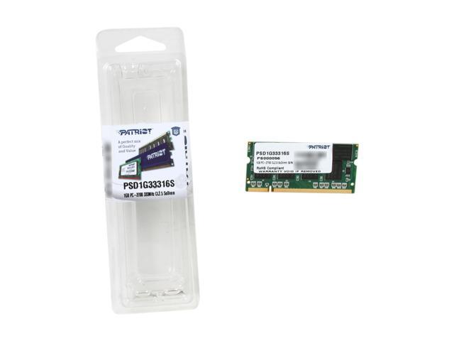 Patriot Signature 1GB 200-Pin DDR SO-DIMM DDR 333 (PC 2700) Laptop Memory Model PSD1G33316S