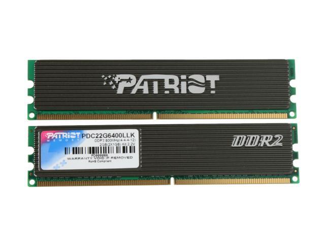 Awaken your sleepy PC or build your own system with the Patriot 2GB (2 X 1GB) 800MHz DDR2 SDRAM Dual Channel Desktop Memory Kit. As one of the hi-tech industry’s most trusted manufacturers of memory, Patriot crafted these 2GB dual-channel low latency sticks for the overclocking-, gaming-, or PC-enthusiast in mind. With an easy-to-install design and responsive 800MHz processing speed, expect blazing performance out of this jet-black pair of memory sticks.