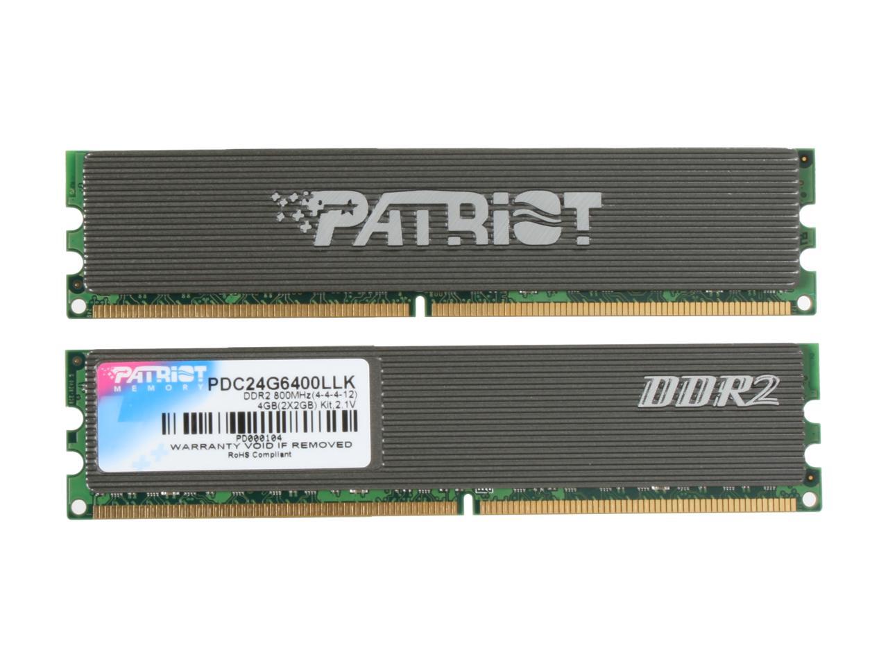 Patriot Extreme Performance 4GB (2 x 2GB) 240-Pin DDR2 SDRAM DDR2 800 (PC2 6400) Dual Channel Kit Desktop Memory Model PDC24G6400LLK