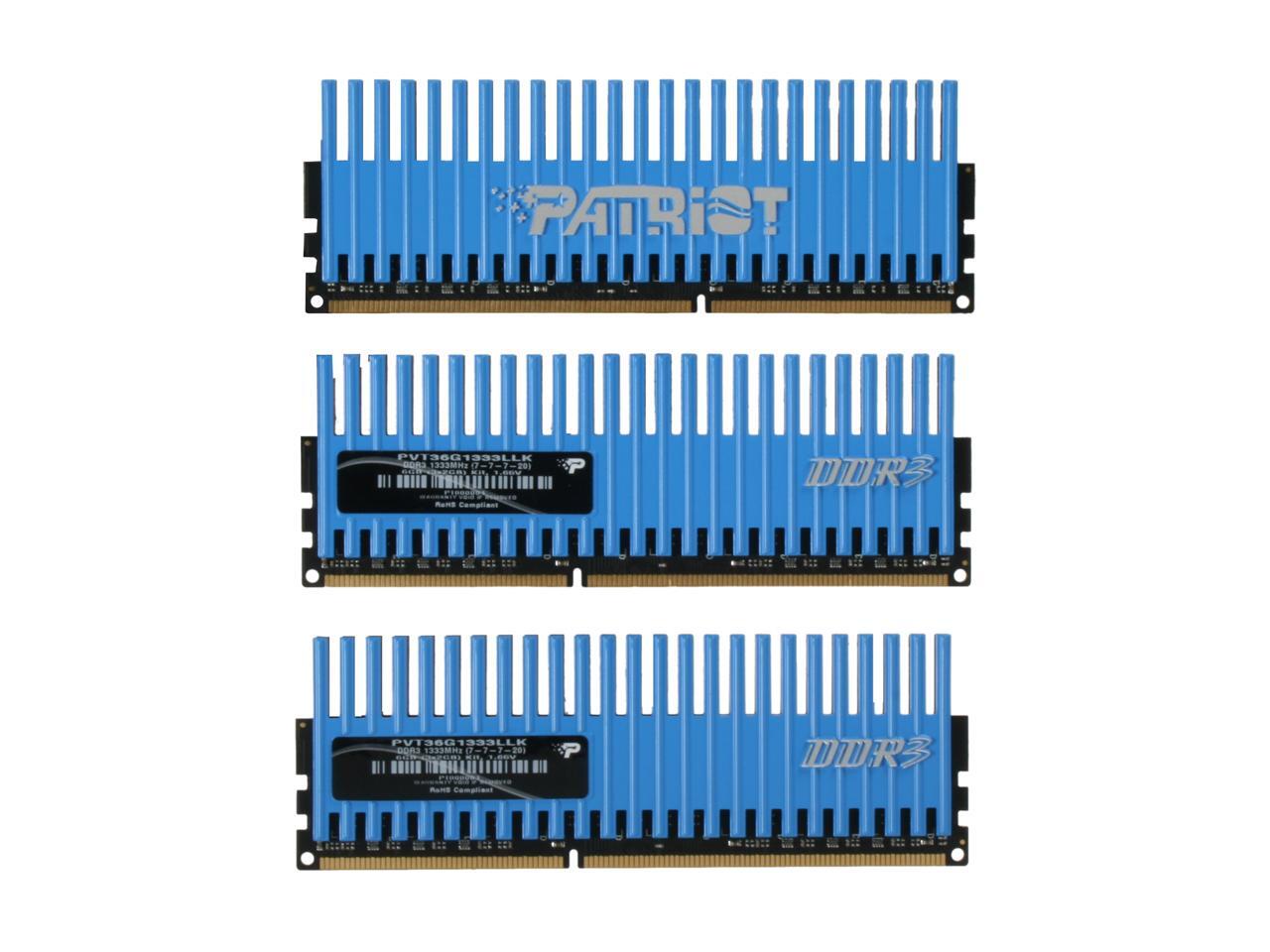 Designed for Intel Core i7 PlatformsThe Patriot PVT36G1333LLK DDR3 memory kit comes in a triple-channel configuration designed specifically for Intel’s new Core i7 processor/X58 chipset-based platforms.