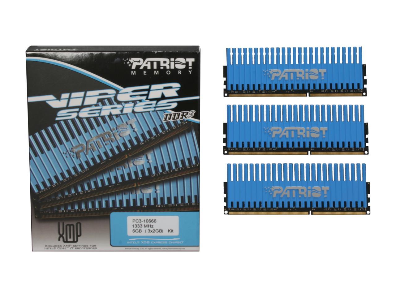 Patriot Viper 6GB (3 x 2GB) 240-Pin DDR3 SDRAM DDR3 1333 (PC3 10666) Desktop Memory Model PVT36G1333LLK