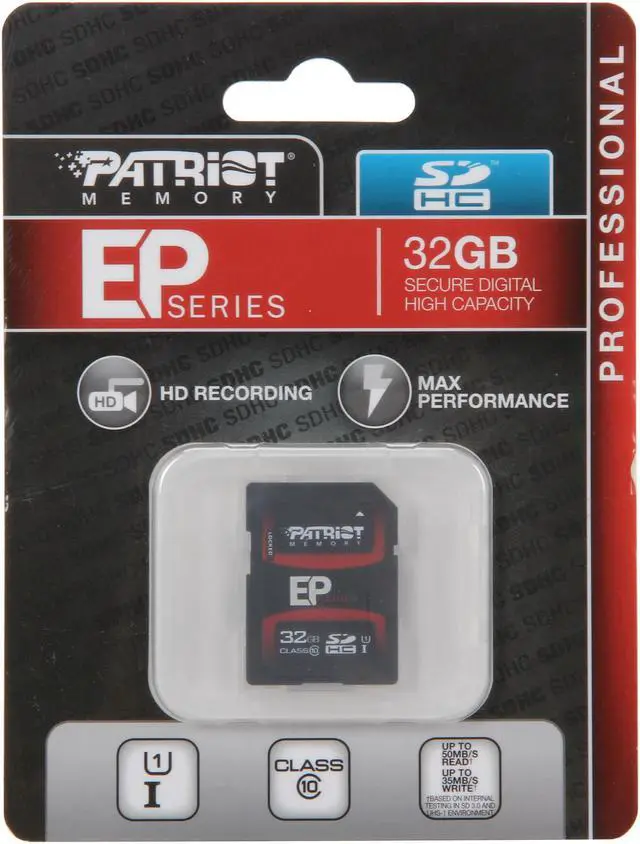 Patriot EP Series 32GB Class 10 Secure Digital High-Capacity (SDHC) Flash Card Model PEF32GSHC10233