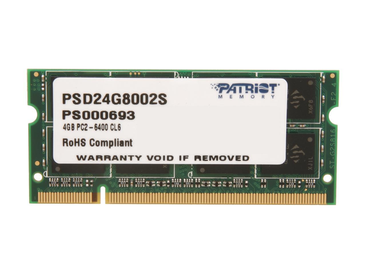 Patriot Signature 4GB 200-Pin DDR2 SO-DIMM DDR2 800 (PC2 6400) Laptop Memory Model PSD24G8002S