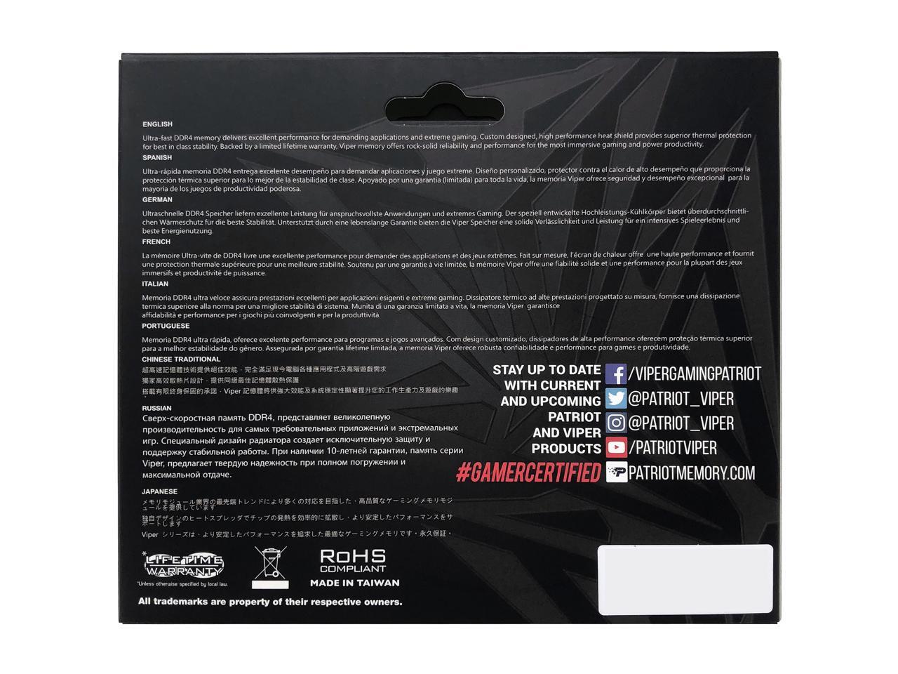 Patriot Viper Steel 32GB 288-Pin PC RAM DDR4 3600 (PC4 28800) Desktop Memory Model PVS432G360C8