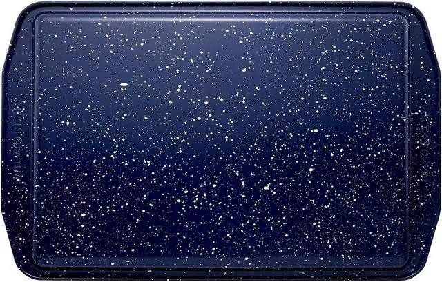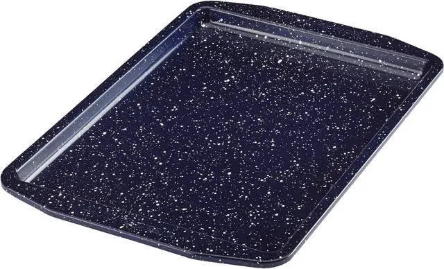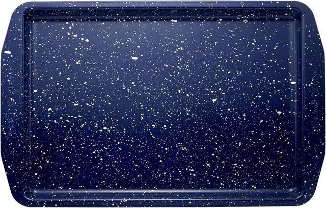 | Special Features | Whatever's in the oven, give it a little more love with the handy, colorful Paula Deen(r) Speckled Nonstick Bakeware 10-Inch x 15-Inch Cookie Sheet, perfect for delicious cooking, baking, and roasting. From roasting fresh veggies to baking yummy treats, the heat's off you and on in the oven with Paula Deen(r) Bakeware. This sturdy, colorful nonstick cookie sheet-also called a jelly roll pan--is a perfect home baking and roasting partner. The baking pan features durable steel construction and rolled rims that resist warping. Inside and out, the entire pan surface is solidly coated with long-lasting nonstick that boosts even oven browning, helps with easy food release, and makes cleanup a breeze. Paula Deen(r) Speckled Nonstick Bakeware adds a splash of charming, down-home design to baking with a speckled color pattern inspired by classic vintage enamelware and other classic kitchenware. Use the pan to prepare Paula’s quick and easy Potato Chip Cookies or to roast root vegetables for a side dish. And why not try baking the sponge cake for a good, old-fashioned jelly roll? The wide handles offer a confident grasp even with your favorite oven mitts, and the bakeware is oven safe to 450 Degree F. Baking is always sweet, even when the recipe is something savory, with the stylish, sturdy, and easy-cleaning Paula Deen(r) Speckled Nonstick Bakeware 10-Inch x 15-Inch Cookie Sheet. |