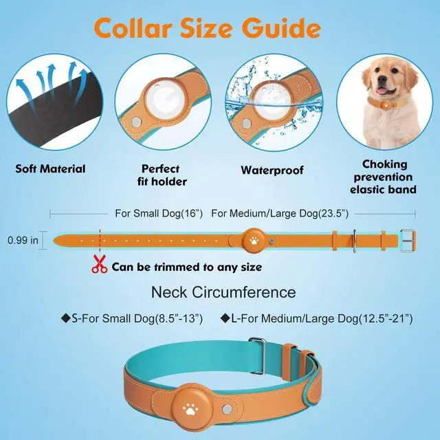 This collar includes a locator and an adjustable design, suitable only for iOS devices (iOS 14.5 and above, iPhone 6S and newer).