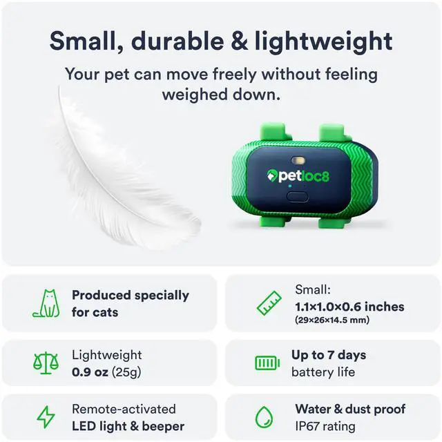 Petloc8 has an IP67 waterproof rating, which means it can withstand immersion in water up to a depth of 1 meter for up to 30 minutes.