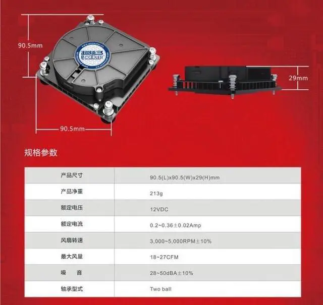 Features: - 10mm, 50000Hours The slim long life ball bearing fan. 10mm slim design, ball bearing, longer life. - 410cm Cold Forging technology, efficient heat dissipation. Cold forging is a cold working process by which the original metal material is forging shaped by forging machine at normal temperature. Cold forging technology radiator, with the characteristics of large cooling area, high density and purity, etc., the effect of heat disppation is better.