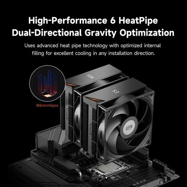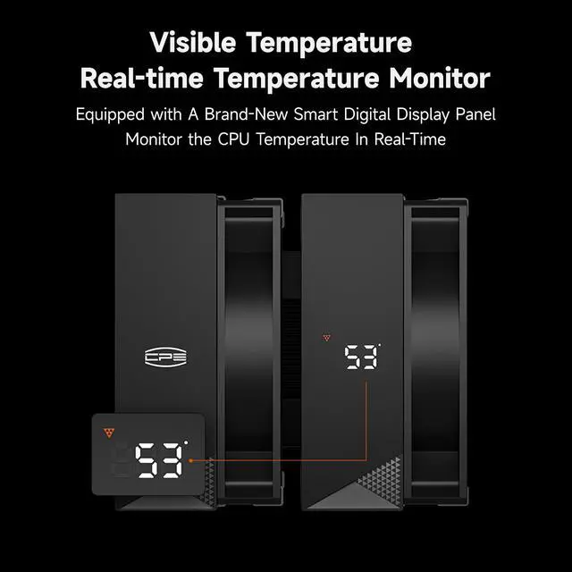 The PCCOOLER CPS RT620 Digital is a state-of-the-art CPU air cooler engineered to deliver exceptional thermal performance for demanding computer hardware enthusiasts. This high-performance cooler is equipped with six efficient 6mm heat pipes, boasting a remarkable 265W TDP, ensuring your CPU remains cool even under heavy workloads. The innovative smart digital display panel provides real-time temperature monitoring, allowing you to keep an eye on your system's performance with ease.