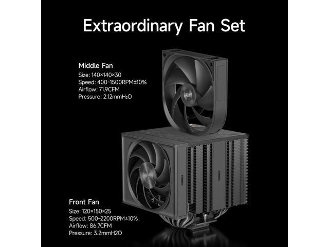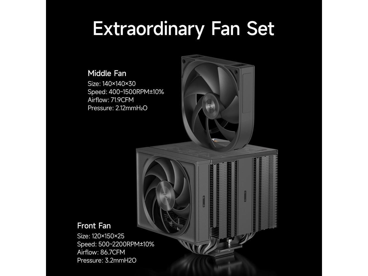 Quiet and Efficient Fans: Features 2 high-performance PWM fans (front fan: 120 x 150 x 25mm and middle fan: 140 x 140 x 30mm), utilizing advanced FDB (fluid dynamic bearings) to minimize noise and enhance durability.
