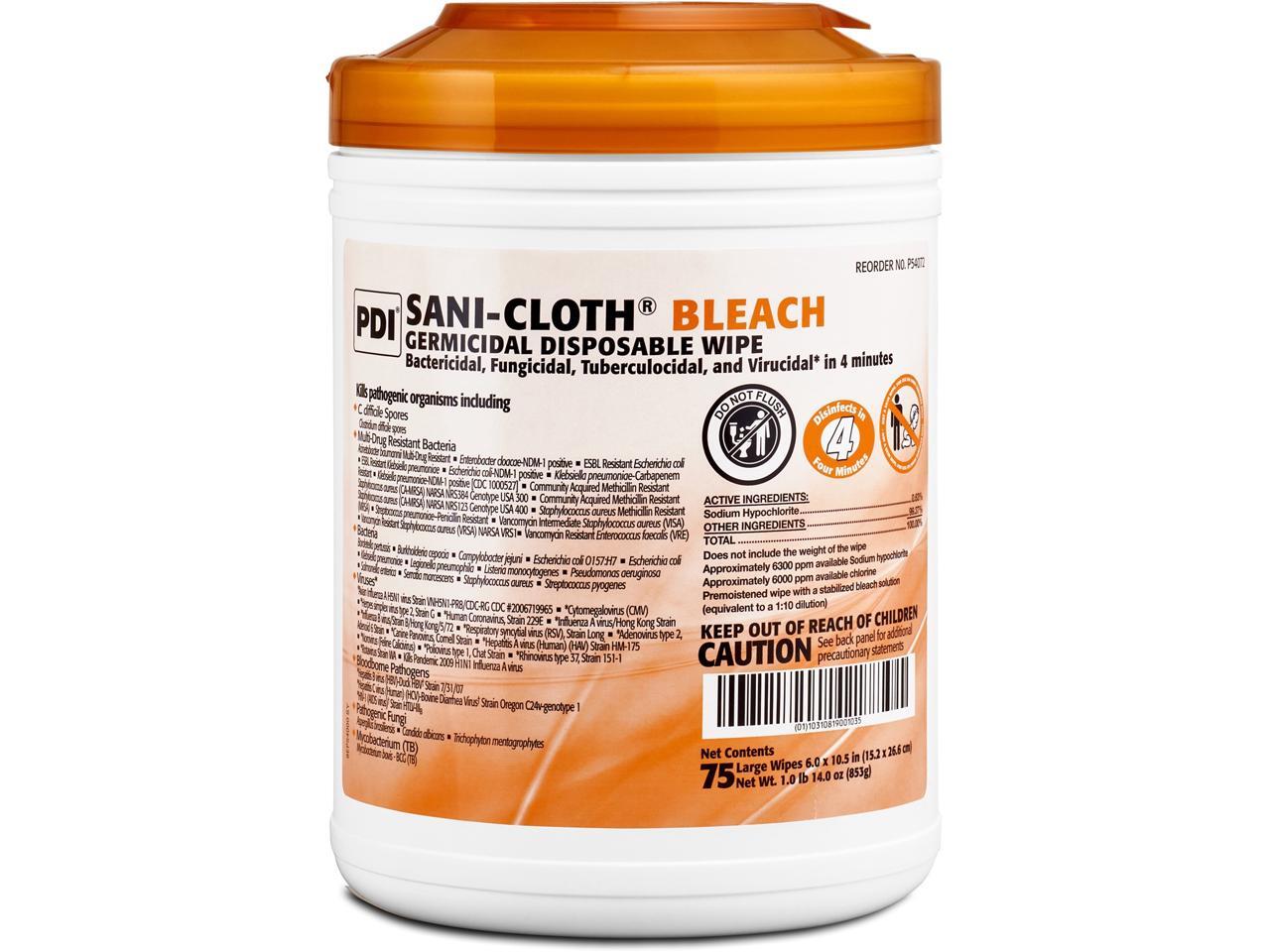 PDI Sani-Cloth Bleach Germicidal Wipes - 75 Wipes/Can - 12 Can/Carton P54072CT