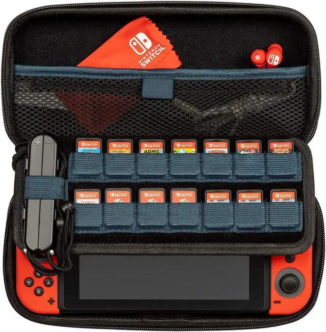 Store your Nintendo Switch console along with its accessories and up to 14 games with this case. All your gear will be protected and held securely in place. The self-fastening pouch lets you customize the fit for the accessories with just a touch.