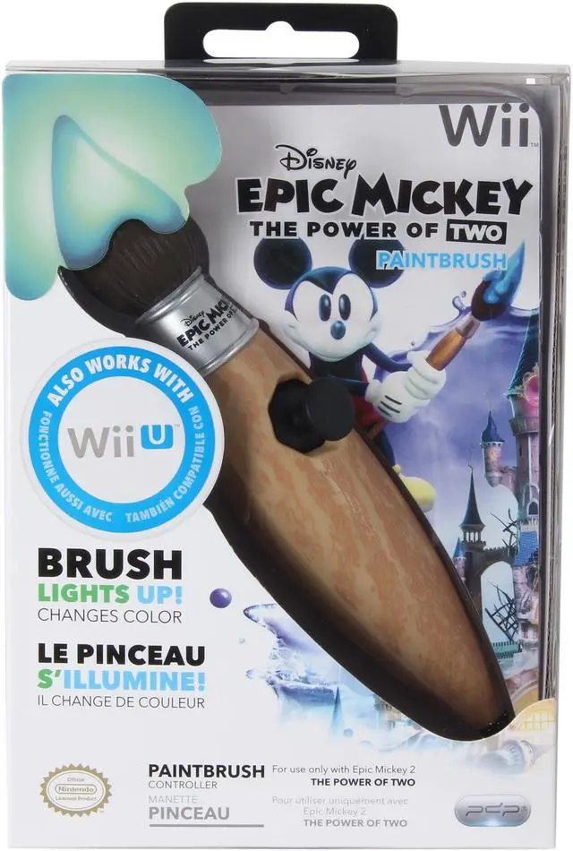 | Features | Do you like your Mickey Mouse with a side of extreme? Then you're going to love the new Epic Mickey 2 and you'll love it even more when you can save the Wasteland using the power of Mickey's brush! The Epic Mickey 2 Paintbrush Gesture Control lights up when plugged in, changes from blue to green when you switch from paint to thinner and can help you get the most from your Epic Mickey 2 adventure! Purchase this with the Epic Mickey 2 Oswald Control Stick and save! Note: The Wii U version of Epic Mickey 2 game only allows the use of controllers as player 2 in co-op mode. |