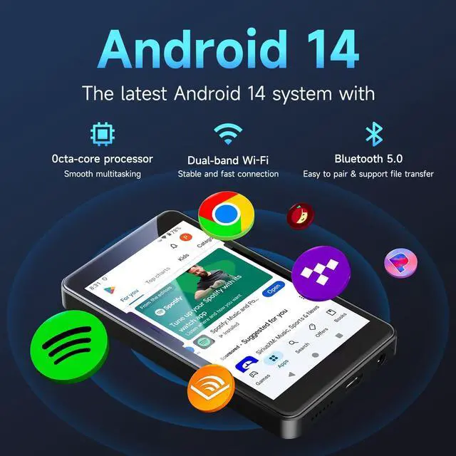 Pecsu G4S (New Release) comes with an MTK octa-core, 3GB RAM & Android 14. Deeply audio-optimized for smooth multitasking, it supports lossless decoding & mainstream music apps. Unlike 2025 entry-level smart MP3s (Android 9.0-12), G4S features Android 14 for better security and expandability.