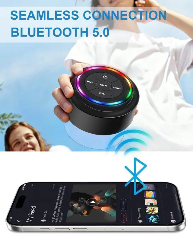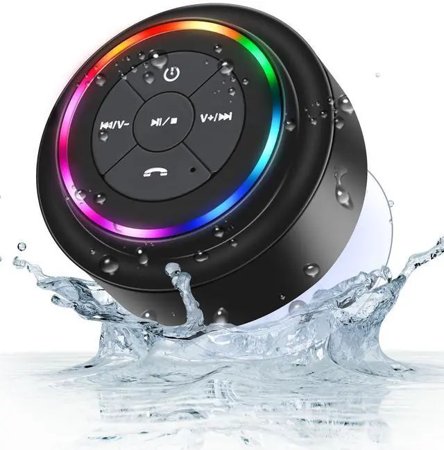 Shower Speaker, Waterproof Bluetooth Speaker, IP67 Waterproof, LED Light, Floating, Suction Cup, Portable Speakers for Travel, Pool, Beach, Kayak, Great Gifts