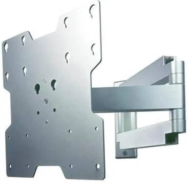 The Articulating LCD Wall Arm supports 22" to 40" LCD screens. With internal cord management this mount folds flat against the wall or extends out up to 20". Its anodized aluminum finish elegantly complements offices, conference rooms, merchandising displays, hotel rooms or any room in the home. This two-link arm provides easy one-touch tilt and up to 180 degrees of swivel for virtually limitless viewing positions. Unsightly cords are routed internally within the arm to maintain the clean look of the installation. Ships pre-assembled for fast and easy installation.