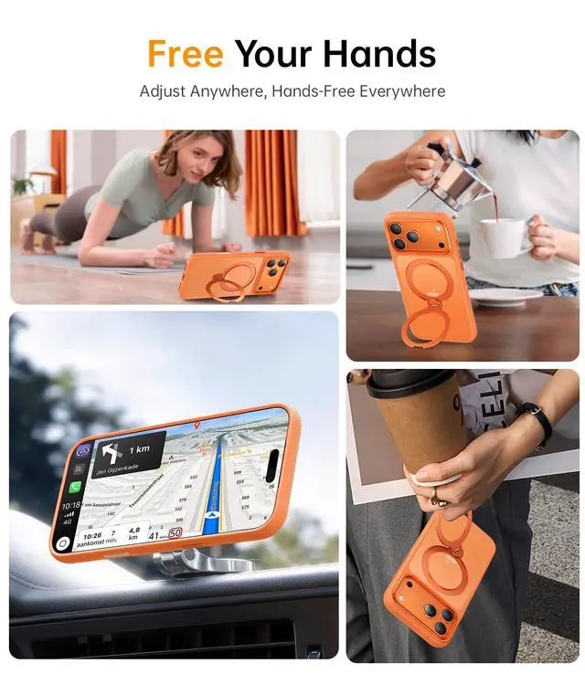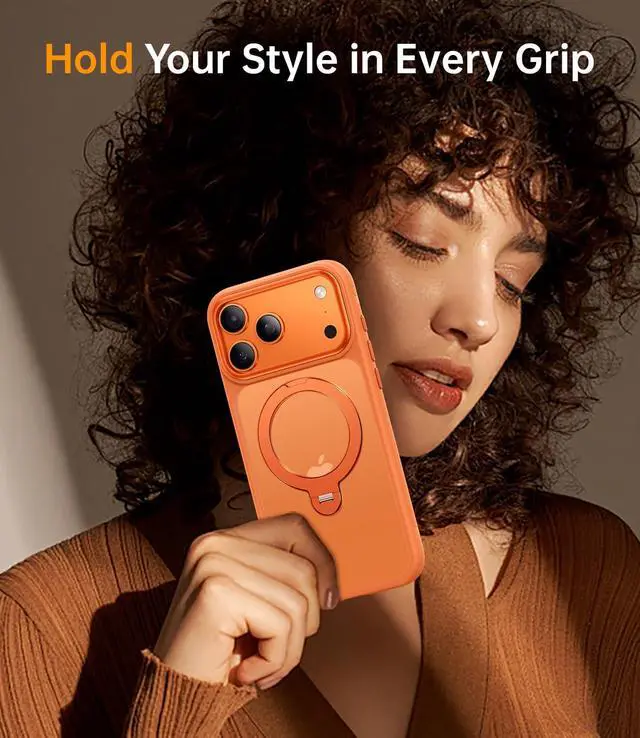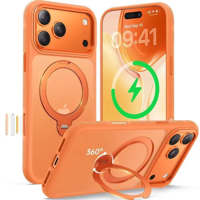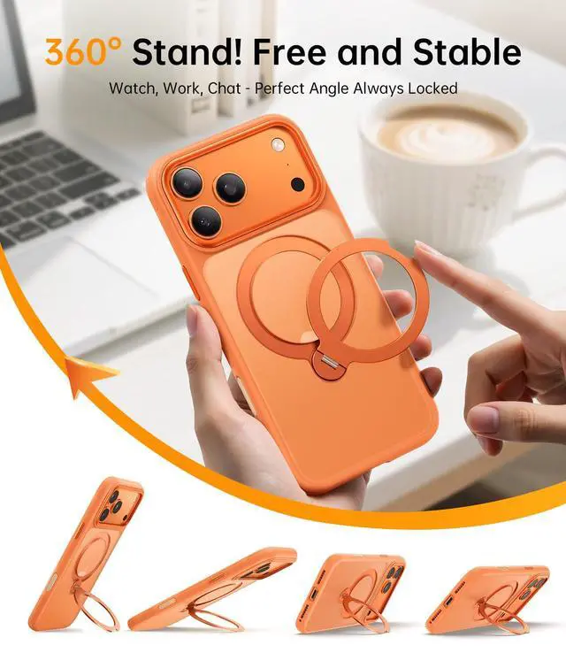 360° Magnetic Stand for iPhone 17 Pro Case, [Fit for MagSafe][Camera Control Button] Mil-Grade Protection Shockproof Slim Translucent Matte Ring Kickstand 17 Pro Case 6.3 Inch, Cosmic Orange