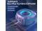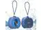 This sleek, compact wireless speaker delivers astonishing stereo sound with powerful highs and deep bass at any volume. Its modern gray design features a vibrant blue accent ring and a handy carrying loop for portability. Perfect for home, parties, or outdoor adventures, this waterproof speaker ensures high-quality audio in any setting."
