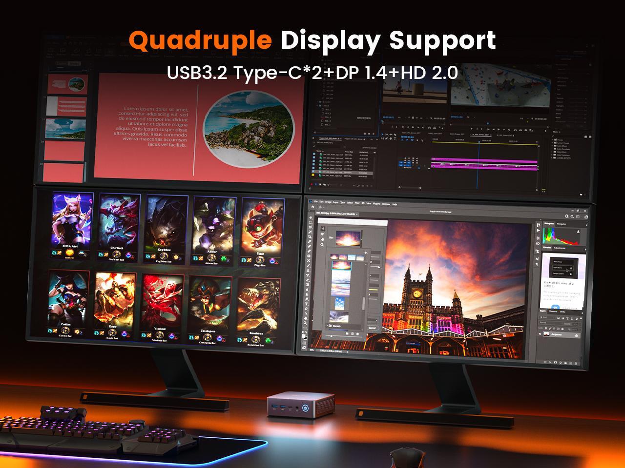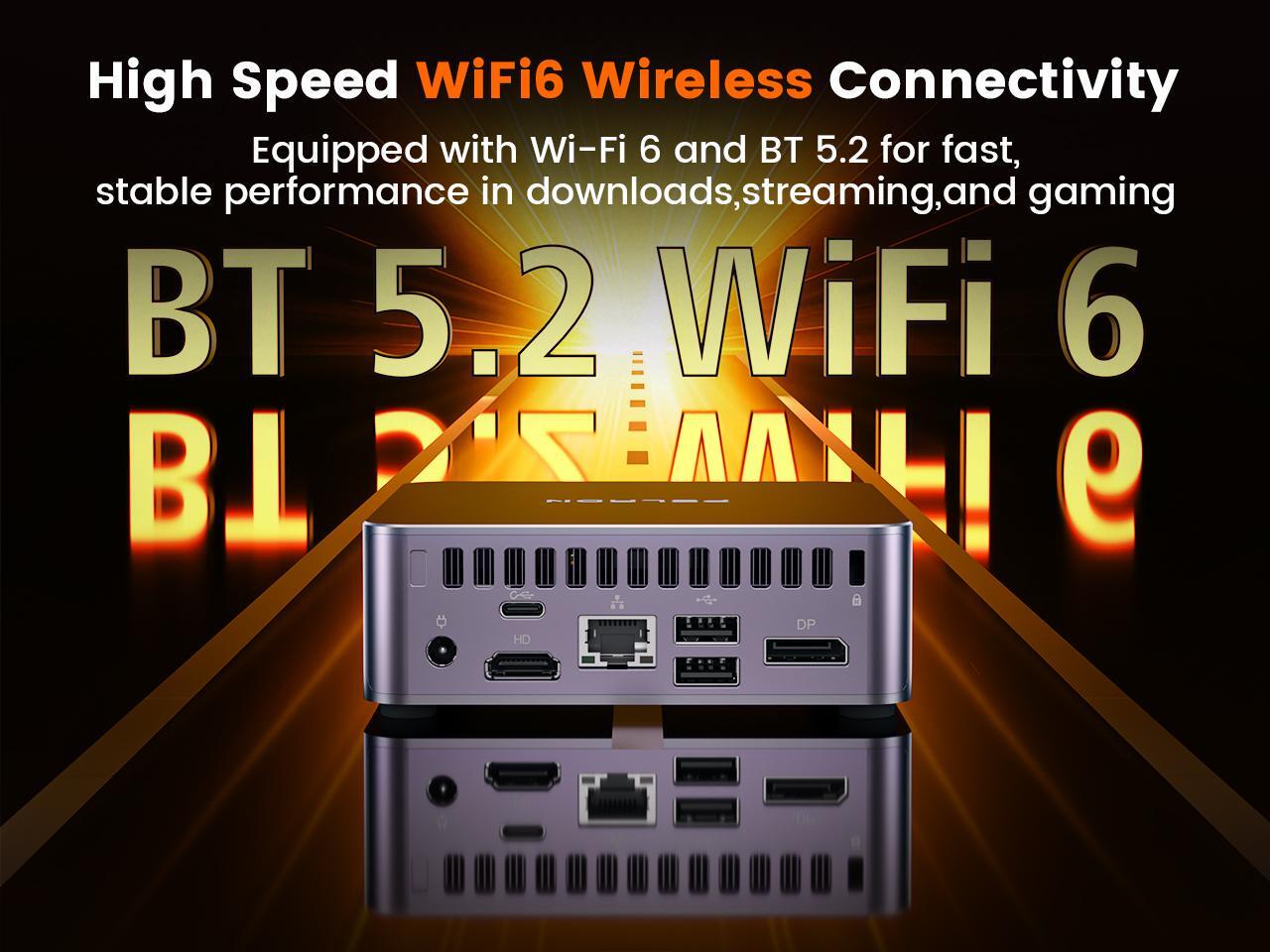 - Rich Interface ConfigurationThe PELADN AE8 Mini PC offers multiple USB ports (including USB 3.2 and Type-C), HDMI 2.0 ports, and a 2.5G Ethernet port, supporting various peripheral connections to meet all your expansion needs. It also supports WiFi 6E and Bluetooth 5.2 for faster and more stable wireless connectivity.