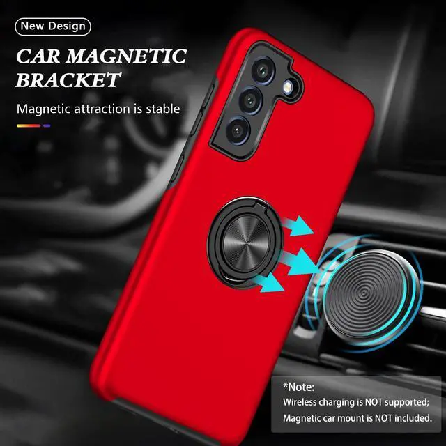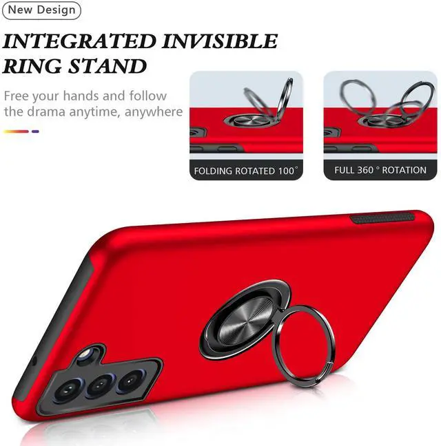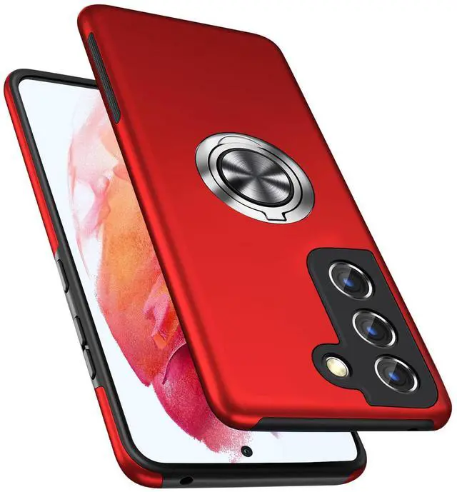 Shockproof Case for Samsung Galaxy S21 5G, [Built-in Camera Cover] Military Grade Phone Case Cover with Embedded Metal Ring Stand Kickstand [Support Magnetic Car Holder] for S21, Red