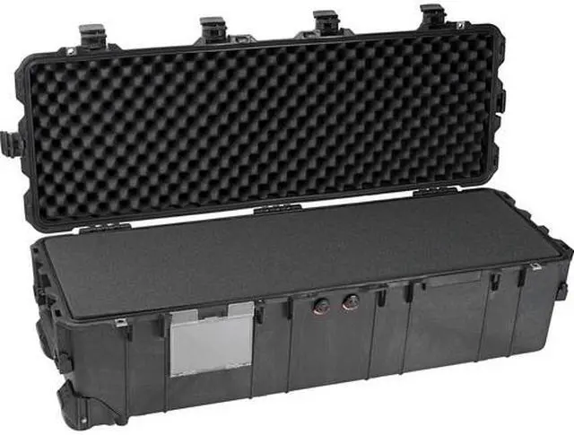 As with all Pelican cases, the 1740 Transport Long Case boasts a dustproof and watertight seal, ensuring your gear remains clean and dry in even the harshest conditions. This case, available in a sleek black finish, is not just a storage solution, but a testament to Pelican's legendary lifetime guarantee of excellence. Trust the 1740 Transport Long Case to provide unparalleled protection for your equipment, no matter where your journey takes you.