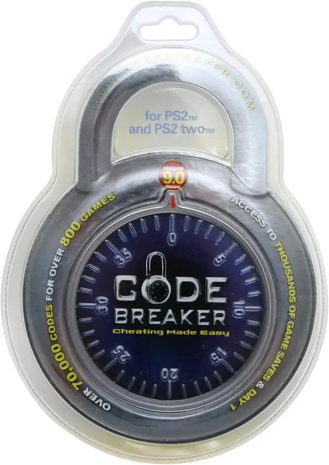 | Features | Code Breaker is the Ultimate cheat device for the Playstation 2. CodeBreaker blows your games wide open allowing you to gain access to in-game secrets never found before. Infinite lives, unlimited ammo, hidden levels and secret characters give your game unlimited replay value. The ultimate cheat code device for PlayStation 2 Gain access to in-game secrets, infinite lives, unlimited ammo, hidden levels & secret characters Gives games endless replay value with easy cheat code access & interface Contains over 2,500 pre-loaded codes without using a memory card |