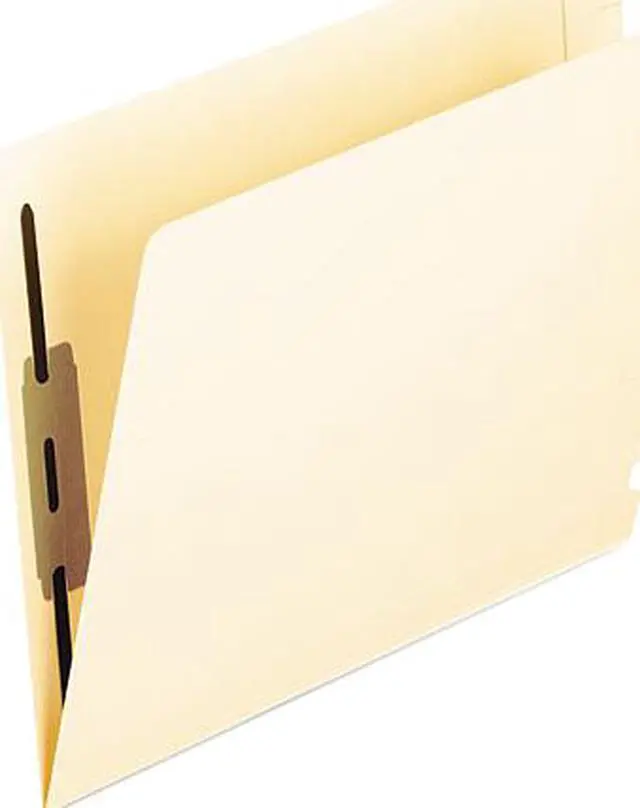 Using rugged file folders is a smart choice for frequently handled documents. These Pendaflex laminated end-tab folders help you organize important materials thanks to their expandable design and bonded fasteners. 14 pt. manila stock with a reinforced, laminated bottom allows durable use. Scored marks indicate that the folder expands up to 3/4". 2"-capacity, bonded fasteners inside the front and back covers keep your documents secure. Reinforced, straight-cut tab withstands frequent handling. Letter-size (8 1/2" x 11") folders with 2 fasteners to secure items. With a box of 50 end-tab folders, your office space is easy to stock. Greener choice - contains 10% postconsumer recycled content.