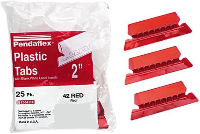 Pendaflex 42-RED Hanging File Folder Tabs, 1/5 Tab, Two Inch, Red Tab/White Insert, 25/Pack