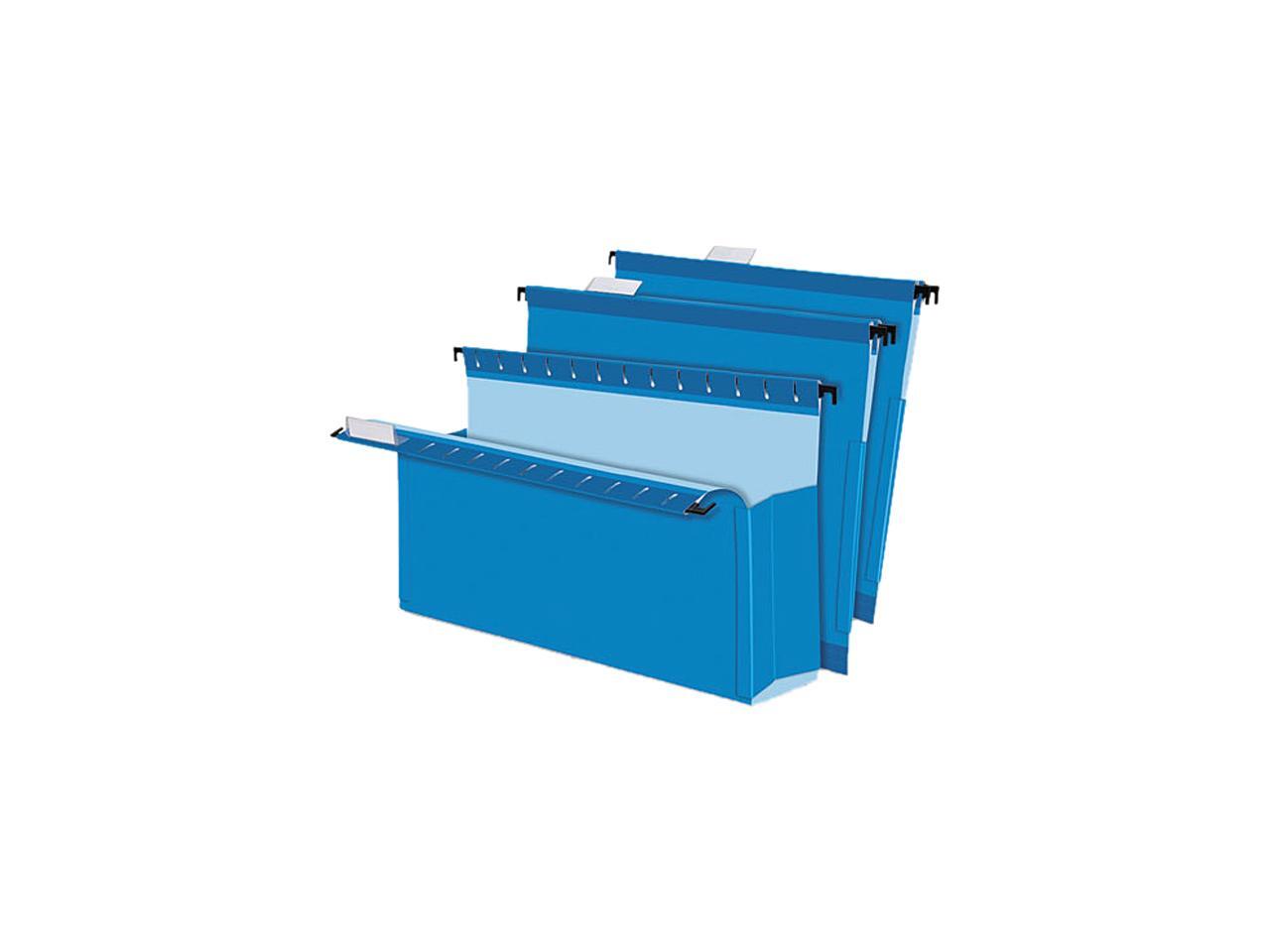 Blue reinforced extra capacity paper stock folders hold up to wear and tear. Scored for 3" expansion to hold several pages at once. 25 per box.