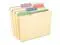 Manila folders with assorted color tabs.