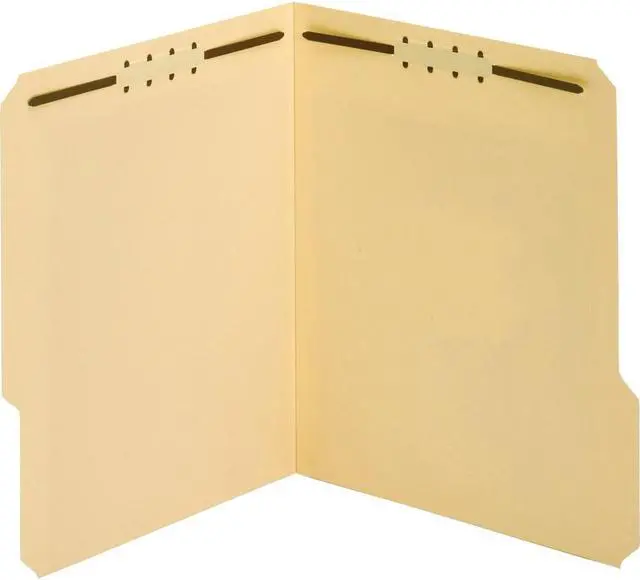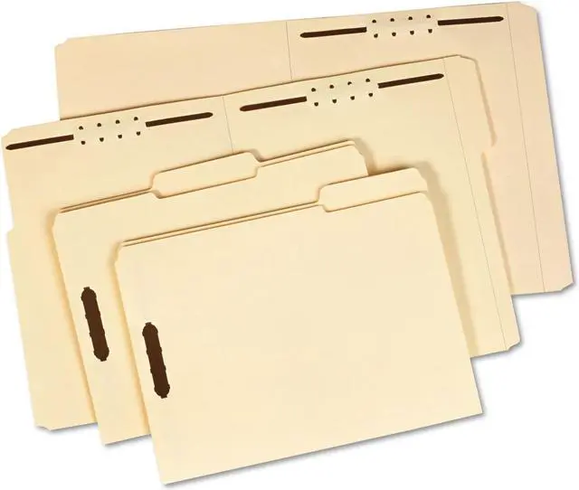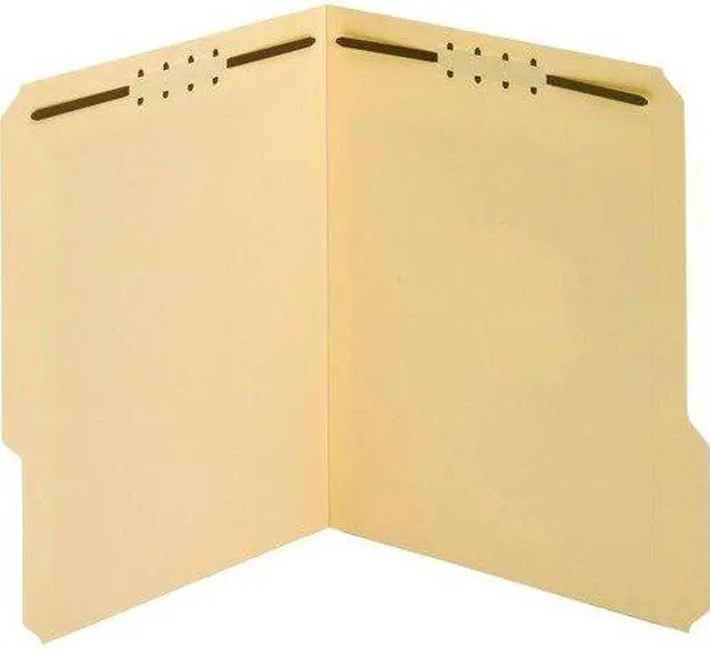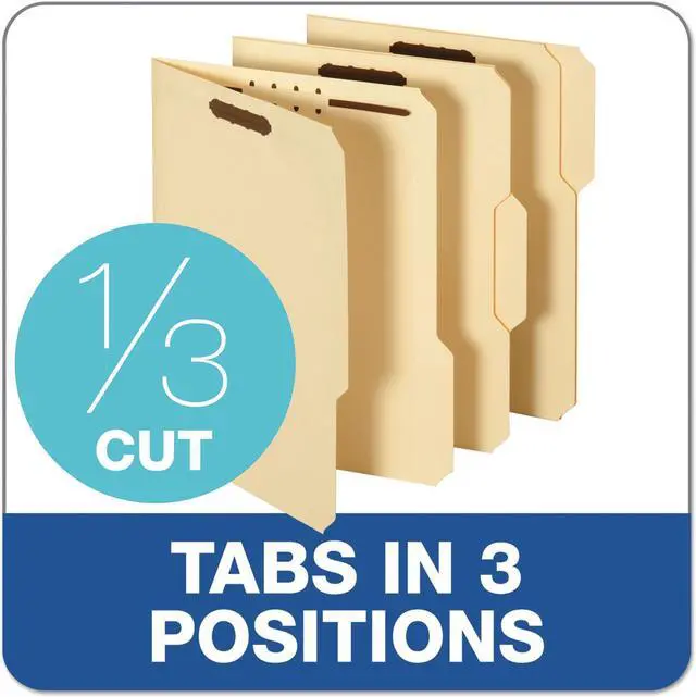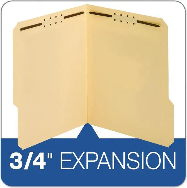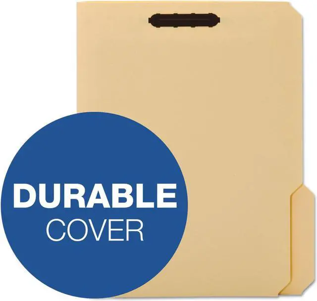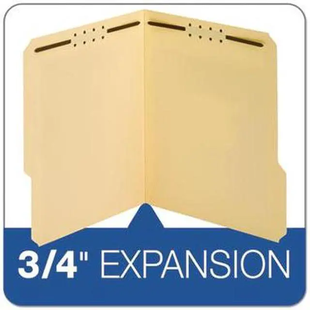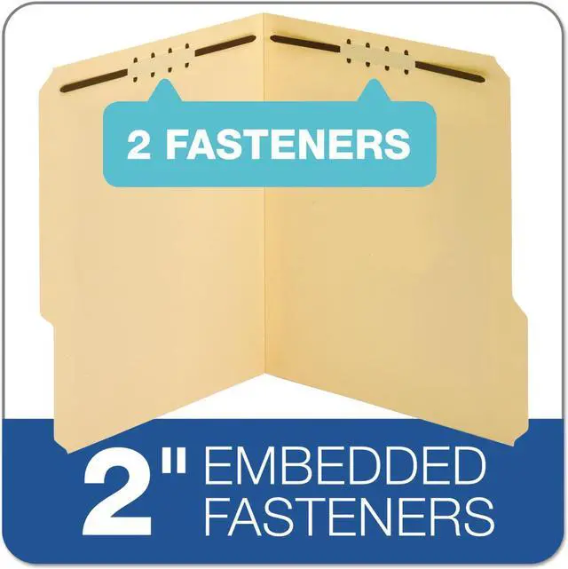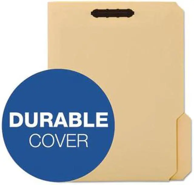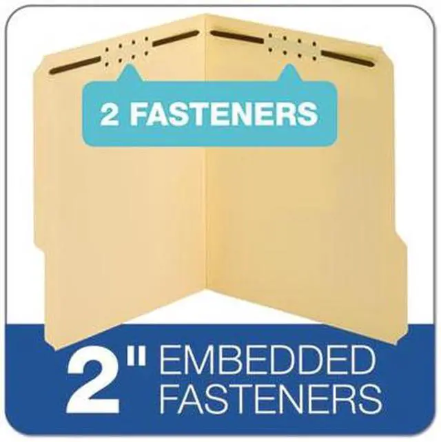 Heavy-duty fastener folders are ideal for frequently handled files and long-term use. Extra-durable, 18 point covers resist bending and tearing. Rigid cover provides stable writing surface. Design also features 2" embedded fasteners in position No. 1 and 3 (front and back covers), 1/3-cut tabs in assorted positions and a 3/4" expansion. Each folder holds letter-size documents.