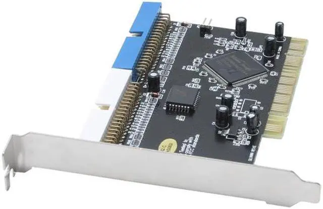 2-channel IDE interface supporting 4 IDE devices, co-exist with on-board IDE interface
