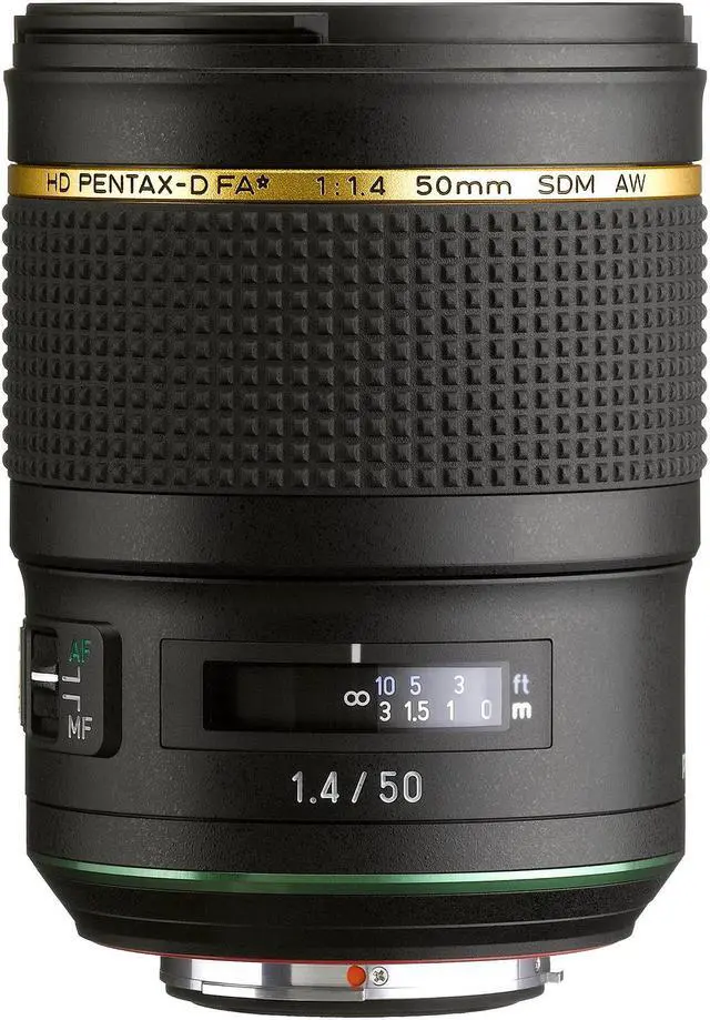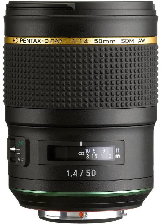 Designed as an All Weather (AW) model, the HD Pentax-D FA 50mm f/ 1.4 SDM AW Lens features a robust dustproof, weather-resistant structure. With eight special seals, it prevents water and dust intrusion into the lens interior, making it a reliable choice for outdoor shooting when paired with a Pentax weather-resistant digital SLR camera body. This lens also incorporates a newly developed ring-type ultrasonic motor SDM, which generates almost twice the torque of conventional lens-driving motors. This powerful driving force ensures smooth, high-speed shifting of the heavy, multi-element rear lens group during focusing operations.