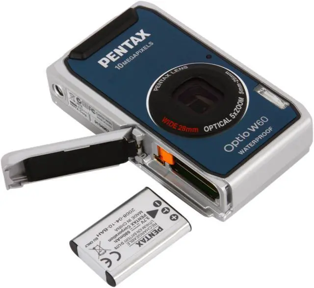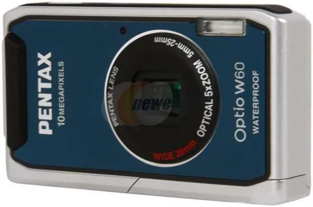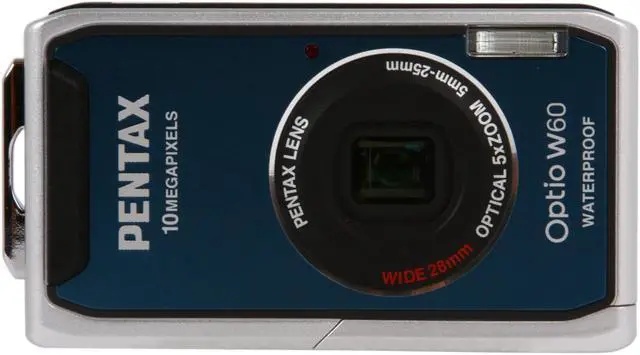 5X Wide-Angle Zoom LensEquipped with a wide-angle zoom lens, the Pentax Optio W60 handles both wide-scene and close-up shots. Get the whole family and lots of friends into one shot at the 28mm wide-angle end, or take extreme close-ups via up to 28.5X zoom capability (5X optical zoom multiplies 5.7X digital zoom).